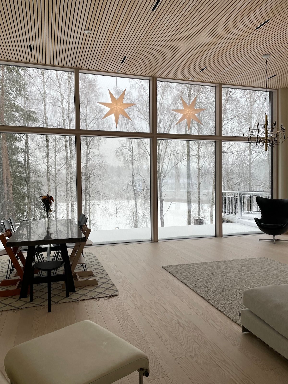 Welcome to our 117m2 CLT-home, exuding calming atmosphere and serenity. With four bedrooms on two floors, a stunning fully-equipped kitchen and a cozy living room - the perfect stage for your comfort. Ideal for families and friends, enjoy BBQ, sauna and the backyard for outdoor fun. The Espoo Central Park trails start right next door, and a mere 20-minute drive takes you to the heart of Helsinki. Make lasting memories with your family and friends during an unforgettable weekend getaway!