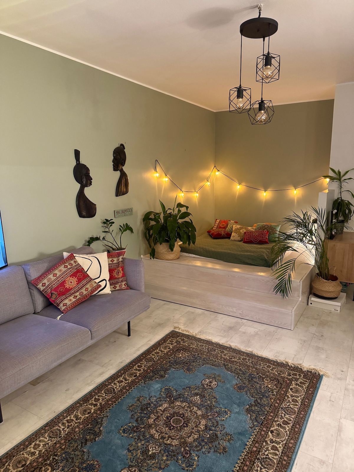Makuuhuoneet: - Tunnelmallinen huone on varustettu 160cm leveällä mukavalla Queen vuoteella sekä tunnelmavalaistuksella (itse säädettävä) - toisessa makuuhuoneessa on parvi sänky sekä yhden hengen vuode Talossa on hyvin varustellut tilat mm avara olohuone keittiö, sauna sekä tarvittaessa lapsille leluja ja ekstra patjat 7:lle majoittujalle. korson juna-asemalle on 10 minuutin kävelymatka ja aivan asunnon edestä menee suora bussi Helsinkiin. Ilmainen parkkipaikka ja sähköauton latauspiste.