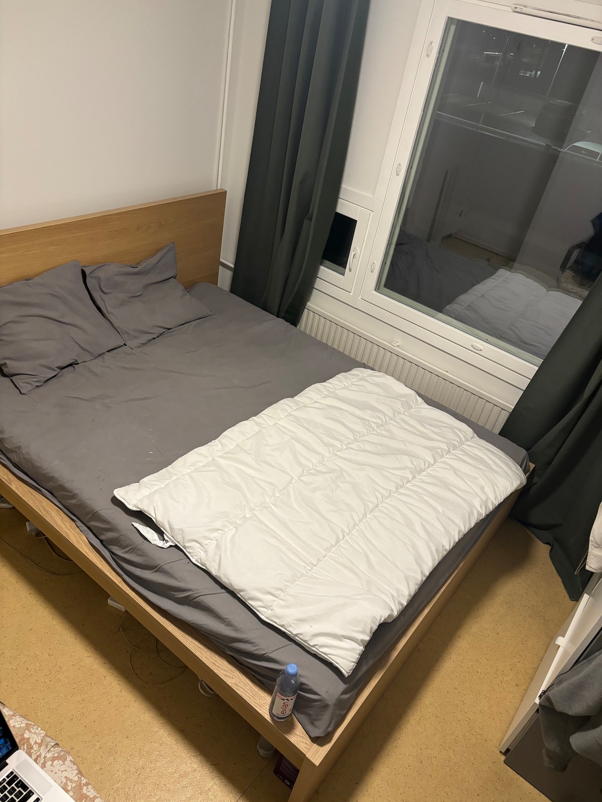1 bedroom apartment (47m2), near airport with good amenities such as sauna, own patio and free parking for up to 2 cars. This is end apartment of a very calm rowhouse. The furniture and surfaces are aged, patio is about to be renovated but overall the general condition is good and the building is well maintained. The flat is designed for 2 people but extra bed can be set to fit a third person. Other equipment include 65” smart TV, Wi-Fi, dishwasher, washing machine, coffee machine and AC.