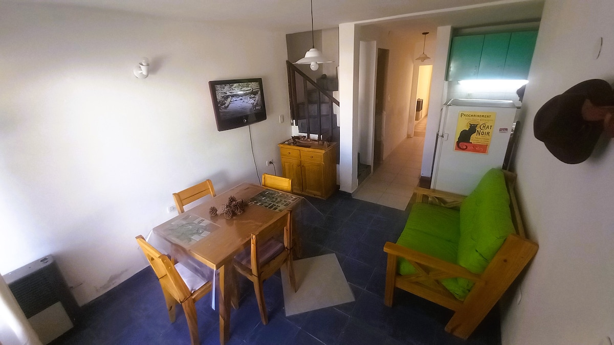 Departamento equipado para tres huéspedes, con espacios acordes para disfrutar de tu estancia cómodamente. Si te gusta despertar y ver el paisaje de esta ciudad, aquí lo vas a poder hacer ya que desde todos los espacios del departamento hay ventanas, lo que lo hace muy luminoso. Estamos en una planta alta, en un barrio tranquilo y de fácil acceso ya que esta ubicado en la calle de ingreso a la ciudad. Hay comercios a los alrededores. Desde aquí, podes caminar y llegar en 10 minutos al centro.-