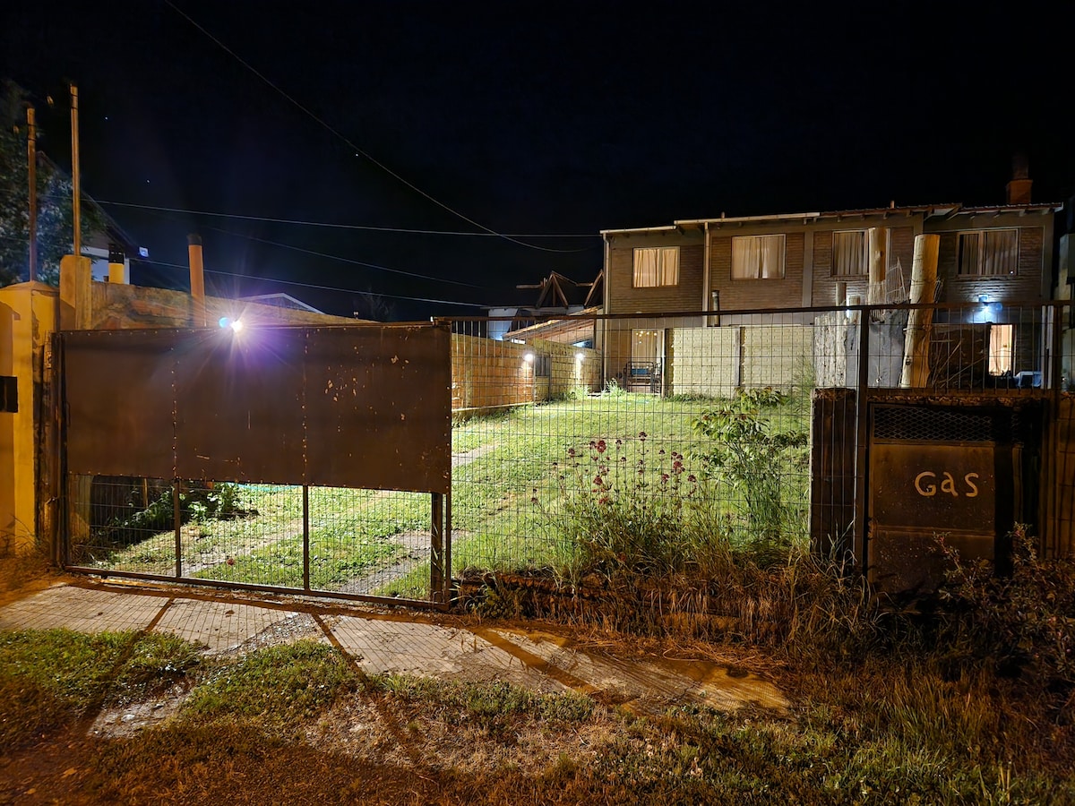 We invite you to enjoy our Patagonian loft, located on the ground floor, with no stairs to access but with a wooden deck over a beautiful patio. It has 1 bedroom with 1 double bed and 1 single bed, kitchen, living room, bathroom and laundry room. We offer a stove to enjoy the winter, a large garden, refrigerator, gas heating, kitchen, washing machine, Smart TV with DirectTV and WiFi. You will also have semi-covered space to store 1 vehicle.