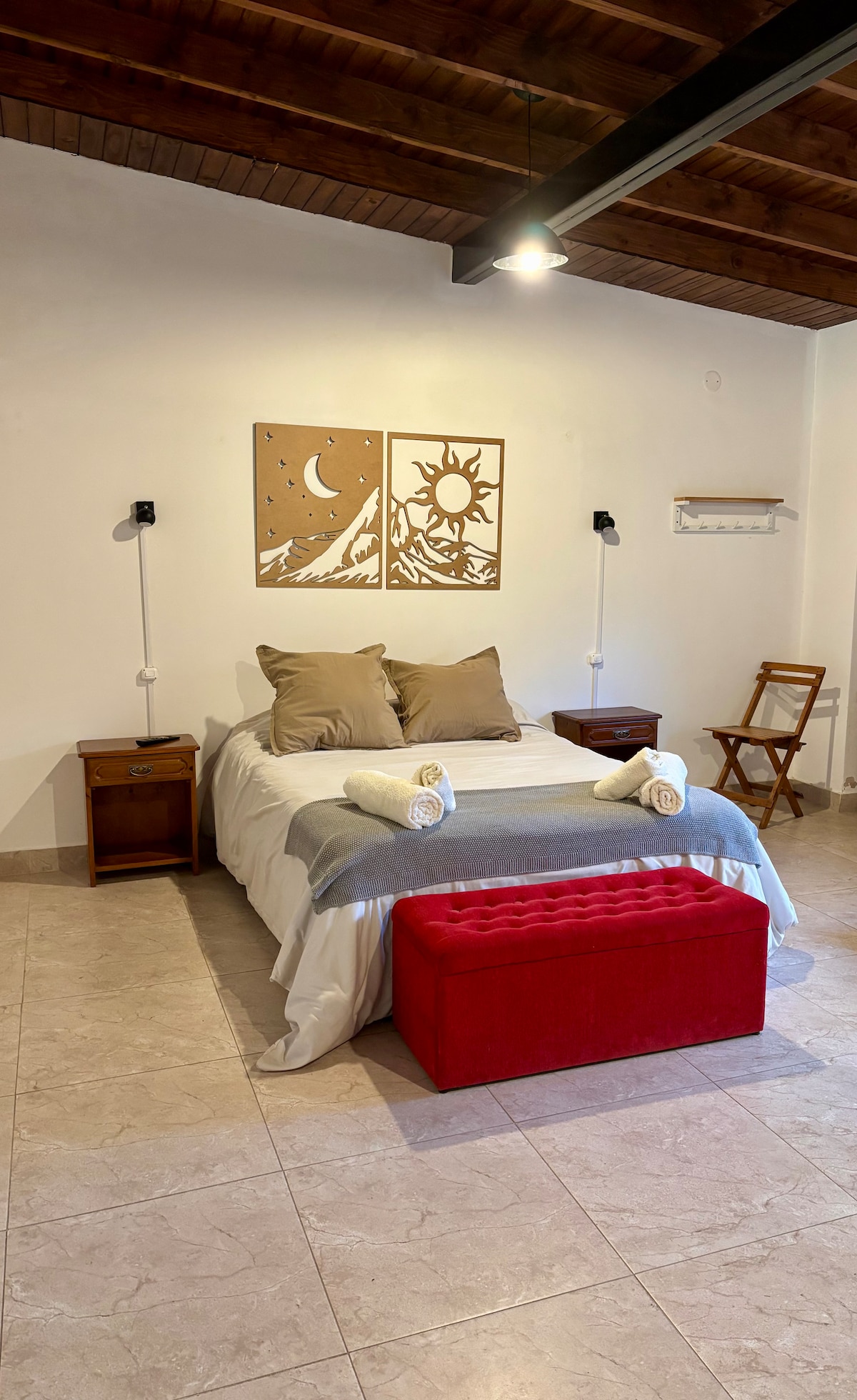 La Casa jardin Adesmia es un espacio muy luminoso, con hermosas vistas al jardín y la huerta de la casa. Ccuenta con una amplia habitación y living comedor cocina, que tienen una hermosa vista al cielo y a las montañas. Además, cuenta con un baño y con un lavarropas. El living comedor cocina es un ambiente amplio y luminoso, muy cómodo para disfrutar cada día. En los días cálidos podrán disfrutar del área verde de la casa, y recorrer los huertos de los anfitriones en épocas de productividad.