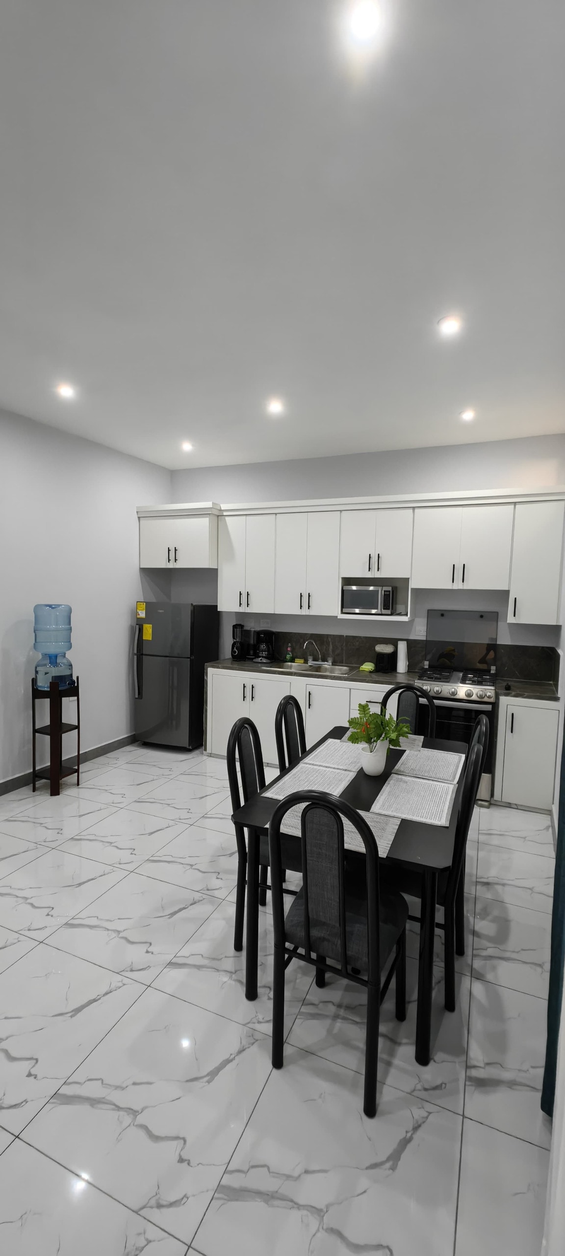 Precioso y moderno apartamento en el corazón de Esquipulas, recién renovado. Perfecto para 8 personas. Ubicado en zona residencial, es muy seguro para salir a caminar con la familia, con tiendas de necesidad básica dentro de la colonia. A 4 minutos caminado del Súpermercado y a 10 minutos de la Basílica. El apartamento cuenta con: dos habitacion con 2 camas matrimoniales, sus baños closet y escritorio de estudio independientes. A/C Sala Comedor Cocina completa Jardin Parqueo privado
