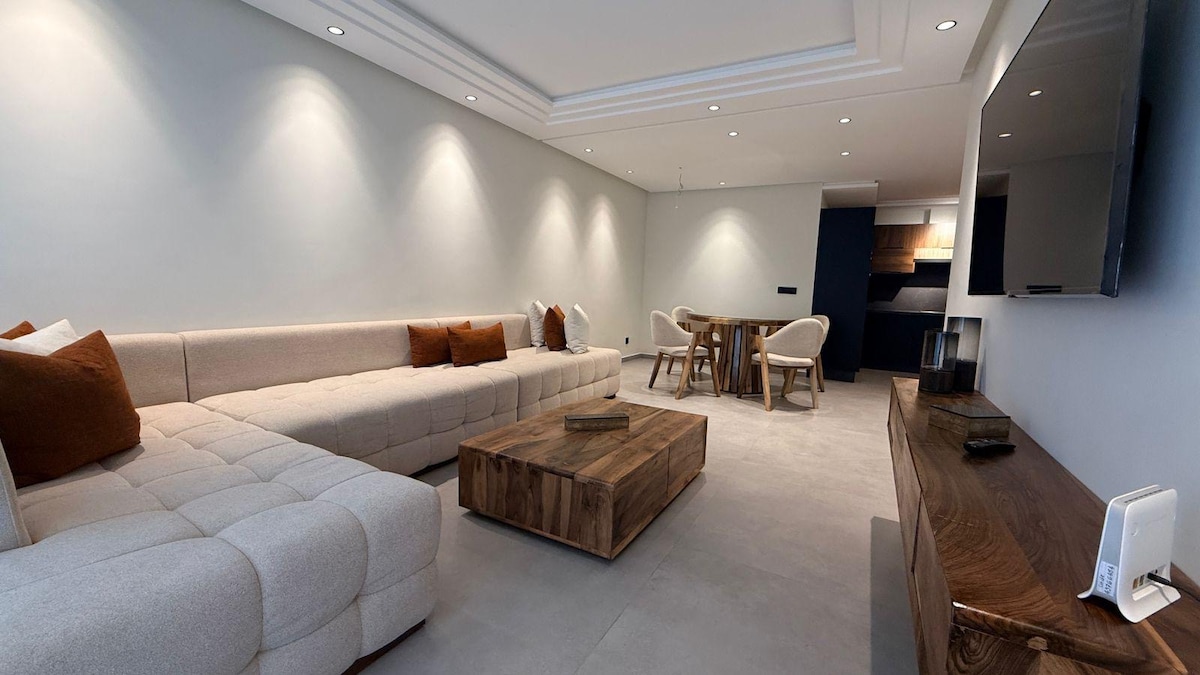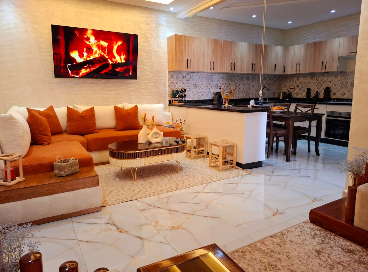 In the tranquil tourist district of Essaouira, this apartment nestled behind the greenery of the forest offers an oasis. Two welcoming bedrooms, one with a king-size bed, the other with two comfortable single beds and spacious wardrobes. The living room with L-shaped sofas and a Smart TV creates a friendly space. The equipped kitchen provides access to a peaceful courtyard. Bathroom and shower with hot water. Enjoy comfort, tranquility, and proximity to nature and the beach