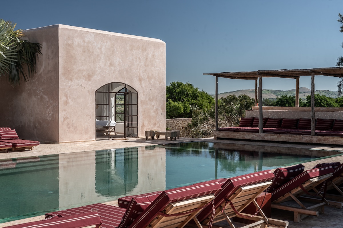Discover Swira Beldi, where luxury meets eco-conscious living in a private park of argan and olive trees, just 15 minutes from Essaouira. This architect-designed villa features 5 suites with hotel-level comfort. A 16x6 m pool, hammam, gym, massage room, putting green, and panoramic terraces—everything is designed for your well-being. Attentive staff and top-tier amenities ensure an unforgettable stay. Book now for a getaway that blends nature, elegance, and total relaxation!