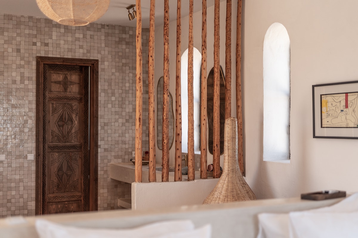 Stay in Calara Tobi, a beautifully restored 18th-century riad in Essaouira’s Medina, offering soulful luxury, panoramic sea views, and exceptional comfort. Ideal for small or big groups, families or a palatial romantic get away. Enjoy our light filled suites, private hammam, cinema room, yoga studio, ice bath/hot tub, sit by the fireplace or enjoy the magnificent views in our sunny rooftop lounge. Great design, attentive staff, and the perfect Medina location ensure an unforgettable stay.