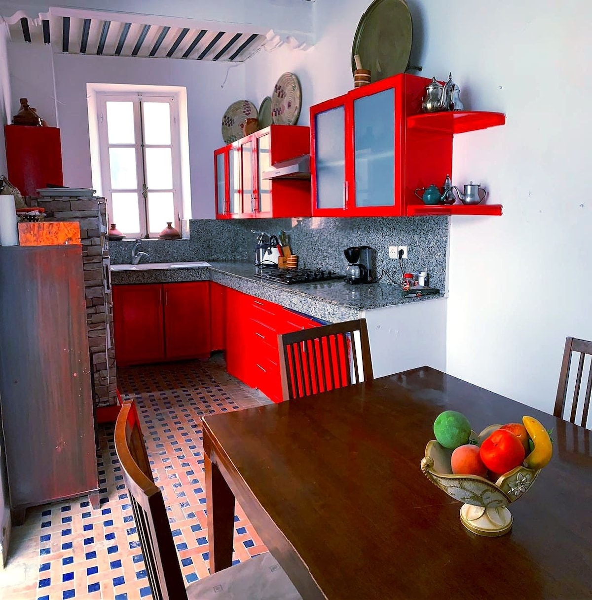 Welcome to our stunning 5-bedroom villa, blending comfort and Moroccan charm. Relax in two elegant salons or unwind on the terrace adorned with traditional Moroccan carpets and design. Enjoy a private swimming pool, fully equipped kitchen, and fast fibre optic internet—perfect for work or leisure. Whether you're here to explore or escape, this peaceful retreat offers the ideal stay. Book your unforgettable experience today!