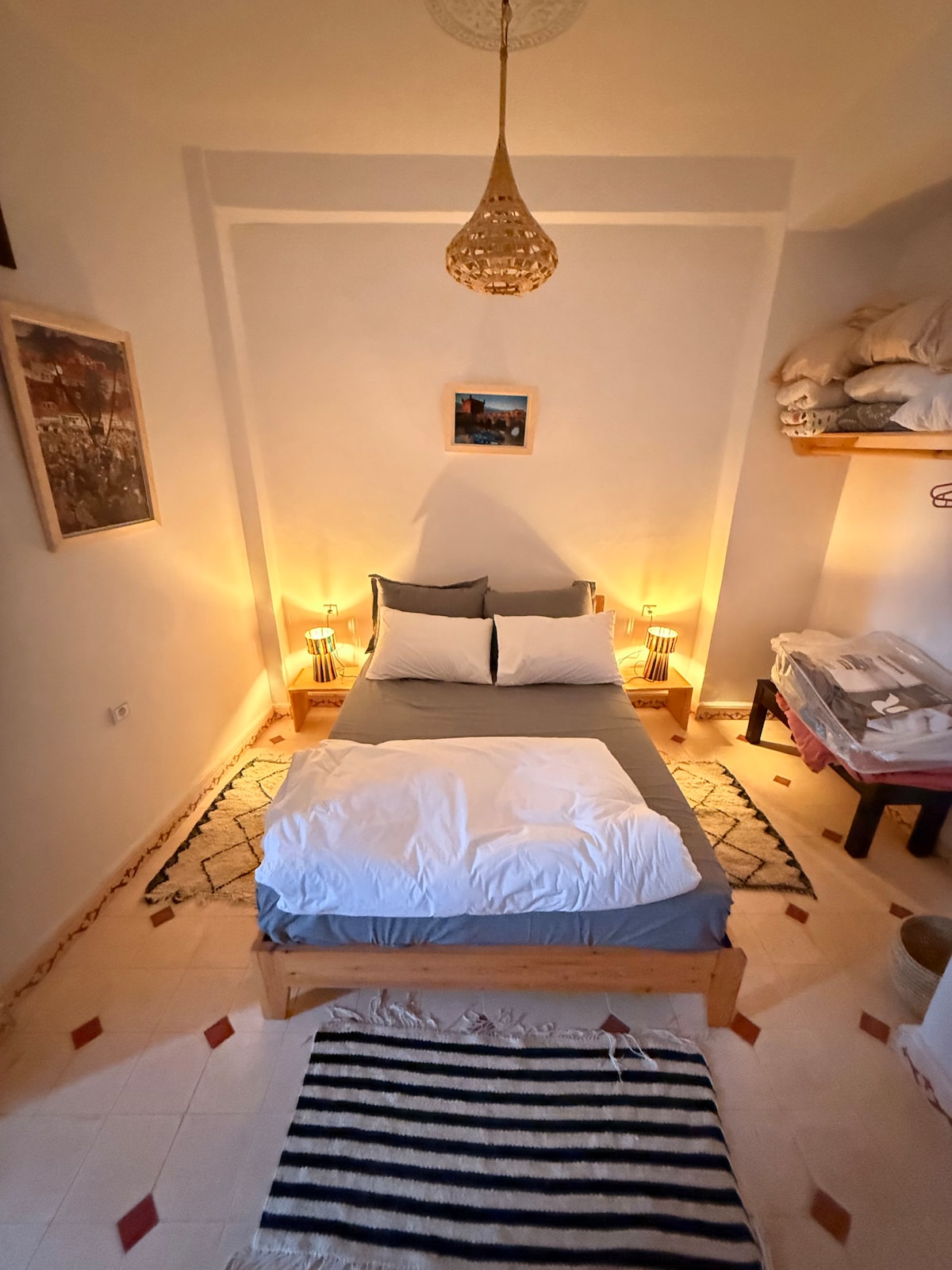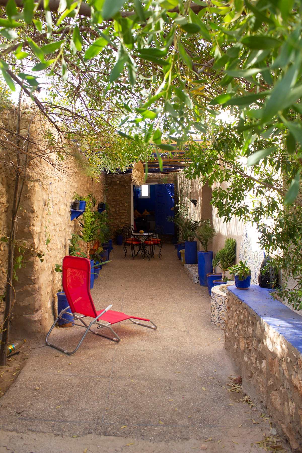Accessible and 12 minutes from the Medina and the beaches, you will enjoy the peace and quiet in the heart of the KM8 district. You will certainly be charmed by the fully equipped outdoor kitchen overlooking the shaded and green garden and its small vegetable patches. Small inspiring unpretentious corner that invites you to relax, you can siesta in a good hammock or read in the shade in a deckchair. Several small shops and buses within walking distance.