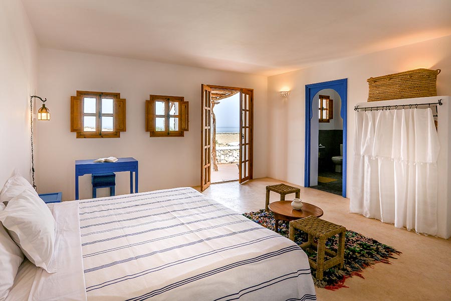Nestled in a Thuya forest overlooking the surf village of Sidi Kaouki, Mellow Beach House offers stunning views of the ocean and countryside, only 20 km from Essaouira city. Mellow is an eco-responsible and energy-independent house, built in the traditional beldi style. The house is powered by solar panels, grey water is used for watering plants, all waste is recycled or composted and the house is equipped with dry toilets, part of our ecological commitment.