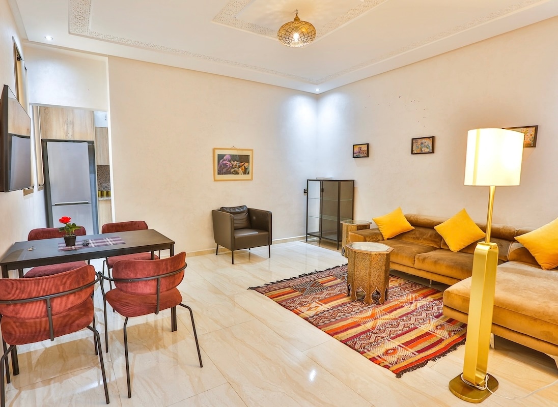 Niché au cœur de la vieille médina, notre appartement offre plus qu'un simple hébergement, c'est un portail pour vivre la vie locale tout en profitant du confort d'une maison loin de chez vous. Au milieu du charme intemporel de la ville antique, où la tradition rencontre la commodité moderne. Il offre une retraite sereine loin des rues animées, offrant une atmosphère calme qui vous met à l'aise. Bien qu'elle soit située au centre, elle offre une oasis paisible où vous pouvez vous détendre.