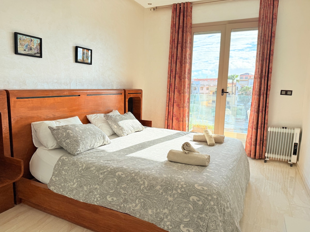 Dar ME is a large and bright Riad, well placed in a quiet area in the heart of Medina, with a private entrance to have the maximum of privacy. The house offers 3 ensuite rooms (one with a bathtub); a large living room with dining table, fireplace and 2 sofà-beds; a fully equipped kitchen; a shared bathroom equipped with washing machine; 3 terraces with sun beds and ocean view (the beach you see is just 5 minutes walk). There is fiber optic free wifi and a made-to-order meals service for a fee.