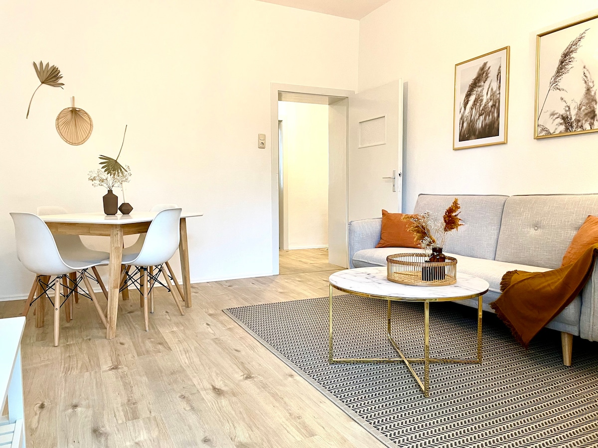 Feeling Home - Eine Ferienwohnung wie ein Zuhause. Unsere modern eingerichtete 3-Zimmer- Wohnung bietet alles, was man für den Alltag braucht: eine voll ausgestattete Küche, 55 Zoll Fernseher (mit Netflix), Spiele, WLAN und Platz für bis zu 6 Personen. Bettwäsche und Handtücher werden jedem Gast zur Verfügung gestellt. Die Wohnung liegt direkt am Uniklinikum und nur 1,3 km von der Messe entfernt. Eine Bus- und Bahnahnhaltestelle befindet sich direkt vor der Tür.