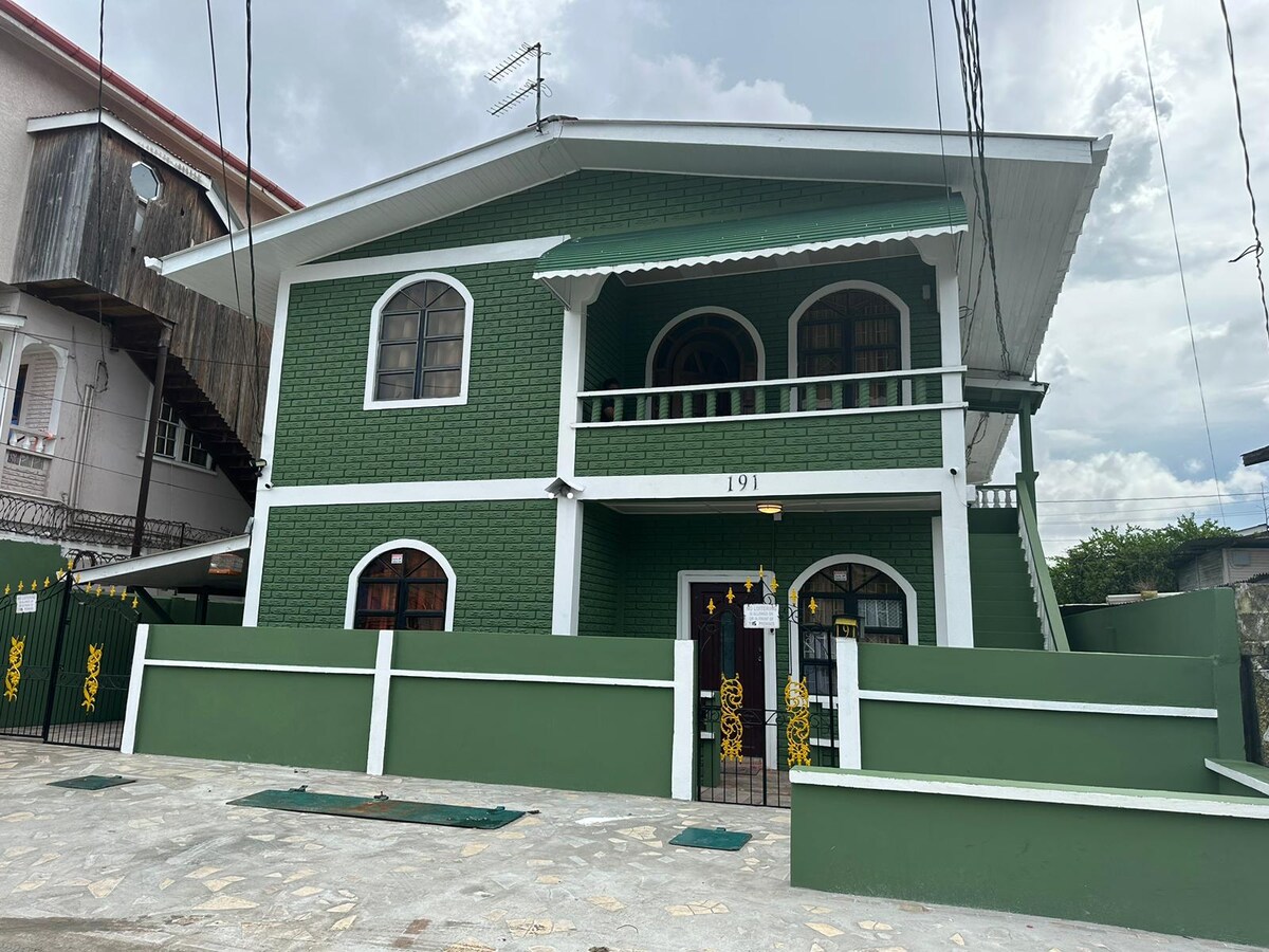 Located between Parika and Vreed-en-hoop. About 5 minutes drive to West Central Mall on the west side . Apartment includes hot and cold water, newly built , vinyl plank flooring throughout, modern kitchen with granite counter tops . 2 bedrooms - one king bed and one queen bed .
