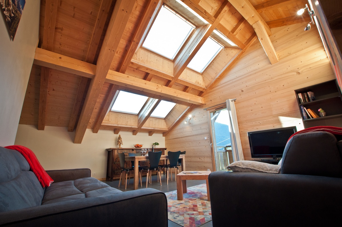 豪华公寓+全景+水疗,靠近Les Gets的度假木屋