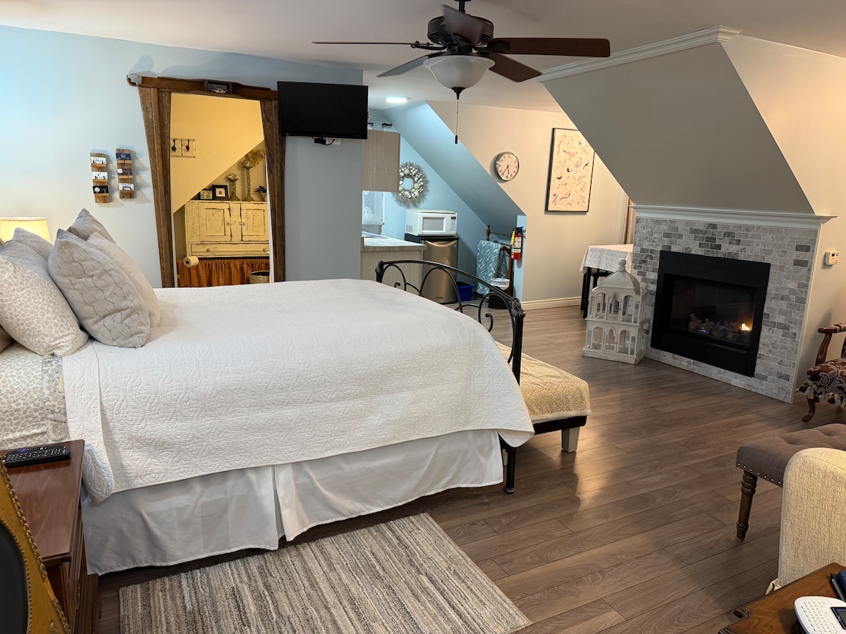 Guests will enjoy our quaint private getaway. Our suite is set above our detached garage. Open concept. Supplied with linens, towels etc for your short getaway. Enjoy all the local wineries, golf courses, breweries, shopping, restaurants. Essex Counties best kept secret. Colchester harbour, with Colchester beach is only a minute away. A separate private sitting area for you to enjoy your stay. We supply bottled water, coffee, coffee cream. Assorted tea, sugar, freshly made banana bread.