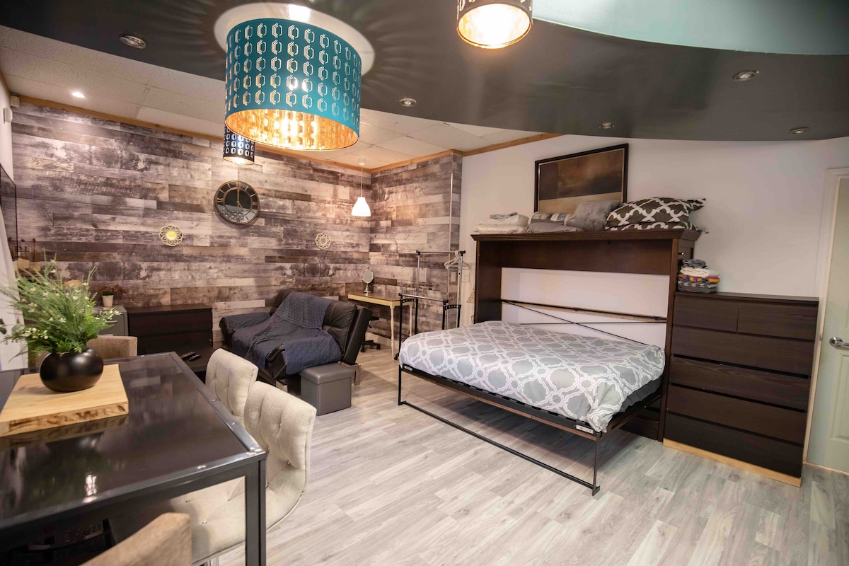 Your oasis in the city. Discover Windsor's only SPA apartment, tucked on a quiet street. Step inside and melt into relaxation with a private infrared sauna, soothing rain shower, full body- zero gravity massage chair and red light therapy. Calming decor, air purifiers and endless IPTV channels create a haven of comfort. Unwind on the spacious 800 sqft shared rooftop deck, then wander to the farmers market, riverfront, casino and top restaurants just steps away.