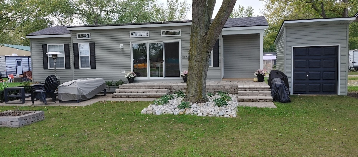 Modern cottage located on a pond with view of the 17th green in Rochester Place Golf Club and Resort. Guests have called our location serene as it is one of the most private cottages in the resort. Open concept with 2 bedrooms; sleeps 6 including a sofa bed. Dock your boat on the resort's canal where you then have access to beautiful Lake St. Clair. Golf on the 18 hole championship course. Enjoy a BBQ on our beautiful patio or take advantage of the many family amenities the resort has to offer.