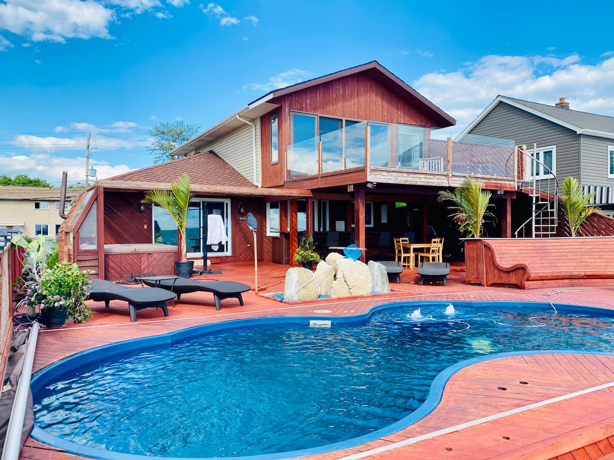 *HEATED POOL IS READY!* Welcome to Windsor’s largest and coziest stay! This gorgeous home blends modern design with comfort, featuring an inviting sunroom with soaring ceilings and natural light, perfect for morning coffee or quiet evenings. The chic decor creates a stylish, yet homey feel :) Unwind in a private backyard oasis with a 15x30, 8’ deep, in-ground oval pool with a brand NEW heater and BBQ lounge! Our backyard designed for a unique and relaxing family experience!