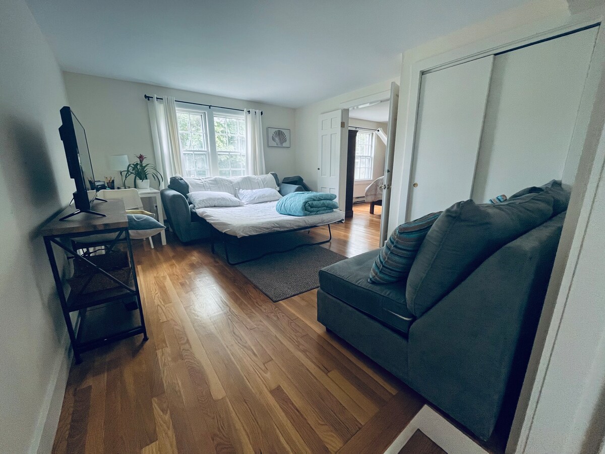 This tiny loft apartment is nestled into the back corner of our 1800's home. With a galley kitchenette, main living area/bedroom this sunlit unit is nicknamed the Birdhouse! The unit has one car parking, wifi, laundry, walk in shower, and 50 inch TV, office workspace, kitchenette with microwave, hot plates, and convection oven as well as refrigerator freezer. Located right off of Rt 128 we are in a great location for traveling to Salem, Boston, Cape Ann, and New Hampshire.