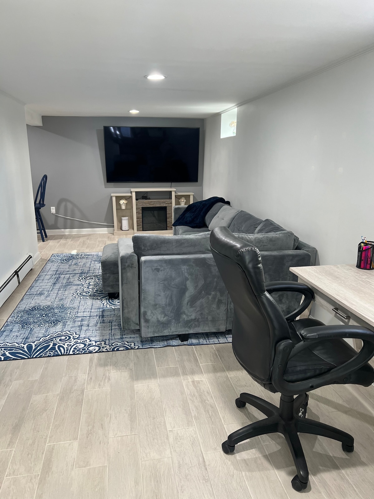 Enjoy your private retreat in this spacious 1-bedroom lower-level apartment, comfortably accommodating up to 4 guests. Features a fully equipped kitchen, a cozy living room with a 65" Smart TV, and access to a beautiful, enclosed backyard. Located minutes from shops and restaurants, it's the perfect blend of comfort and convenience for your stay.