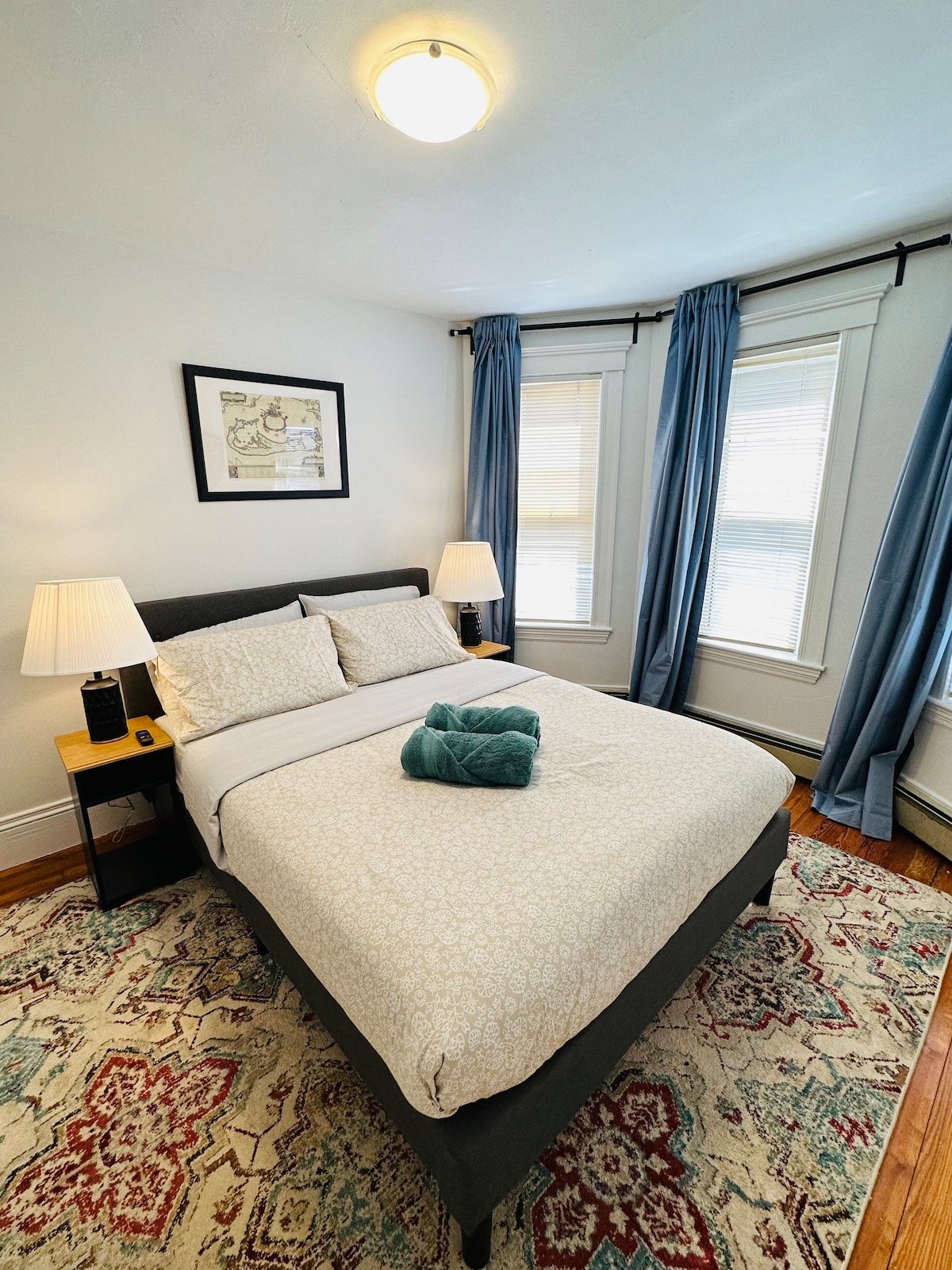 Stay in a charming townhouse cottage that blends history with comfort. With original hardwood floors, rustic exposed beams, and a sunlit skylight, the home feels warm and inviting. The home has 2 bedrooms with one king-size bed, one queen-size bed, bathroom, living room, and Eat in Kitchen. Free tandem parking for 2 cars, makes city access stress-free. Book your stay and feel right at home!