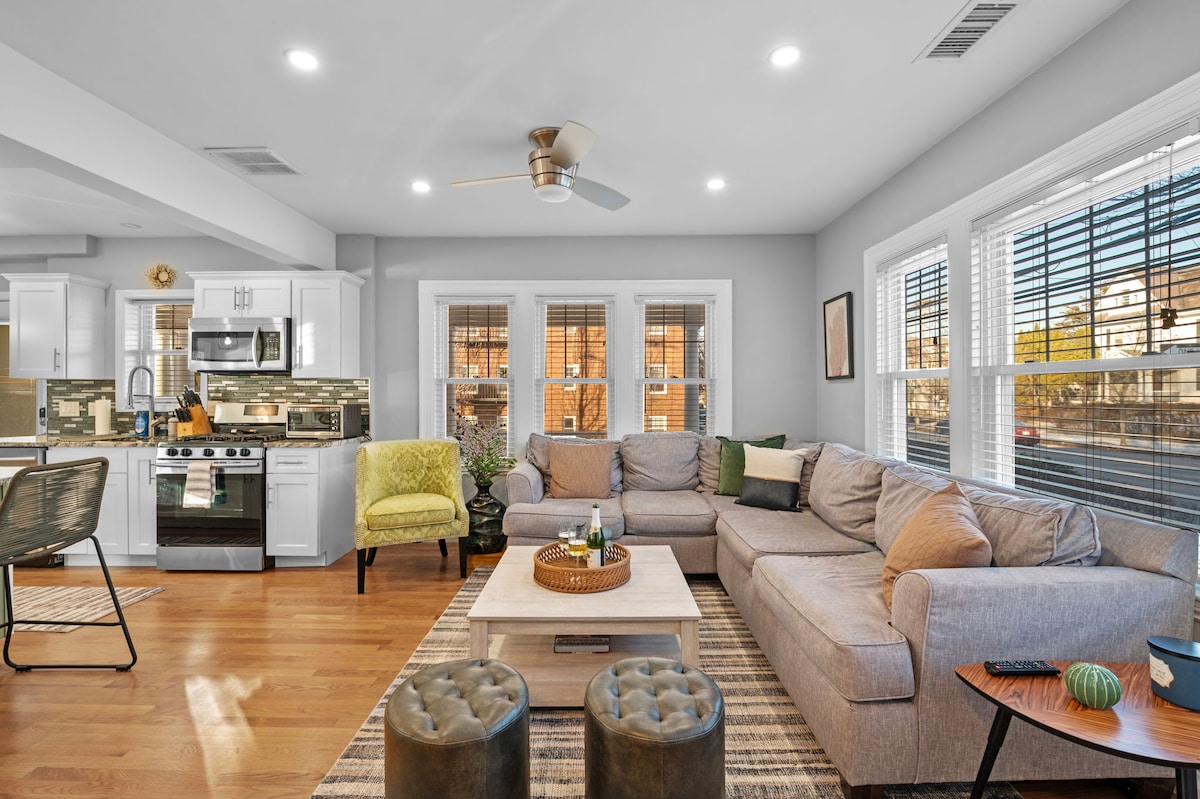 Welcome to this beautifully renovated 3-bedroom loft-style townhouse in the heart of downtown Newburyport, available for 30+ night stays from February through April. Steps from State Street, the waterfront, shops, dining, and the Rail Trail, this furnished home features central A/C and heat, high-speed WiFi, a chef’s kitchen, in-unit laundry, two full baths, a private patio, and two off-street parking spaces — ideal for remote work, relocation, or extended coastal living.