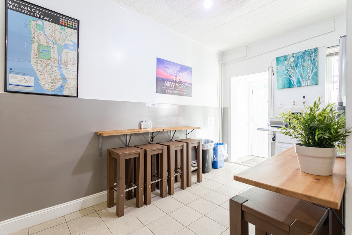 Take it easy at this unique and tranquil getaway nestled in Montclair’s estate section. Spread over two floors, you have plenty of space to relax in this beautifully renovated guest house. Outdoor space includes a spacious patio with a wood burning chiminea. This one of a kind home is located on a 1.2 acre property with views of NYC from the bedroom (!) as well as access to a private Har-Tru tennis court. Tennis rackets and balls available. (Tennis court may not be playable in winter months.)