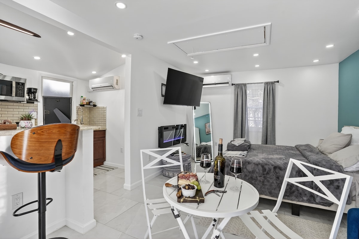 Relax in Sparkling GuestHouse in Ironbound, privacy of your own home with easy access to NYC, Newark airport and local attractions. Enjoy vaulted ceilings with recessed lights. Stay comfortable with cooling / heating minisplit, Queen size bed, TV w/ HBO, showtime, and WIFI. Explore the shops galore along Wilson Ave and Ferry streets: bakeries, beauty spots, sports bars.Commute to the city 23 min, easy access to highways, EWR. Don’t take my word for it, come and see for yourself!