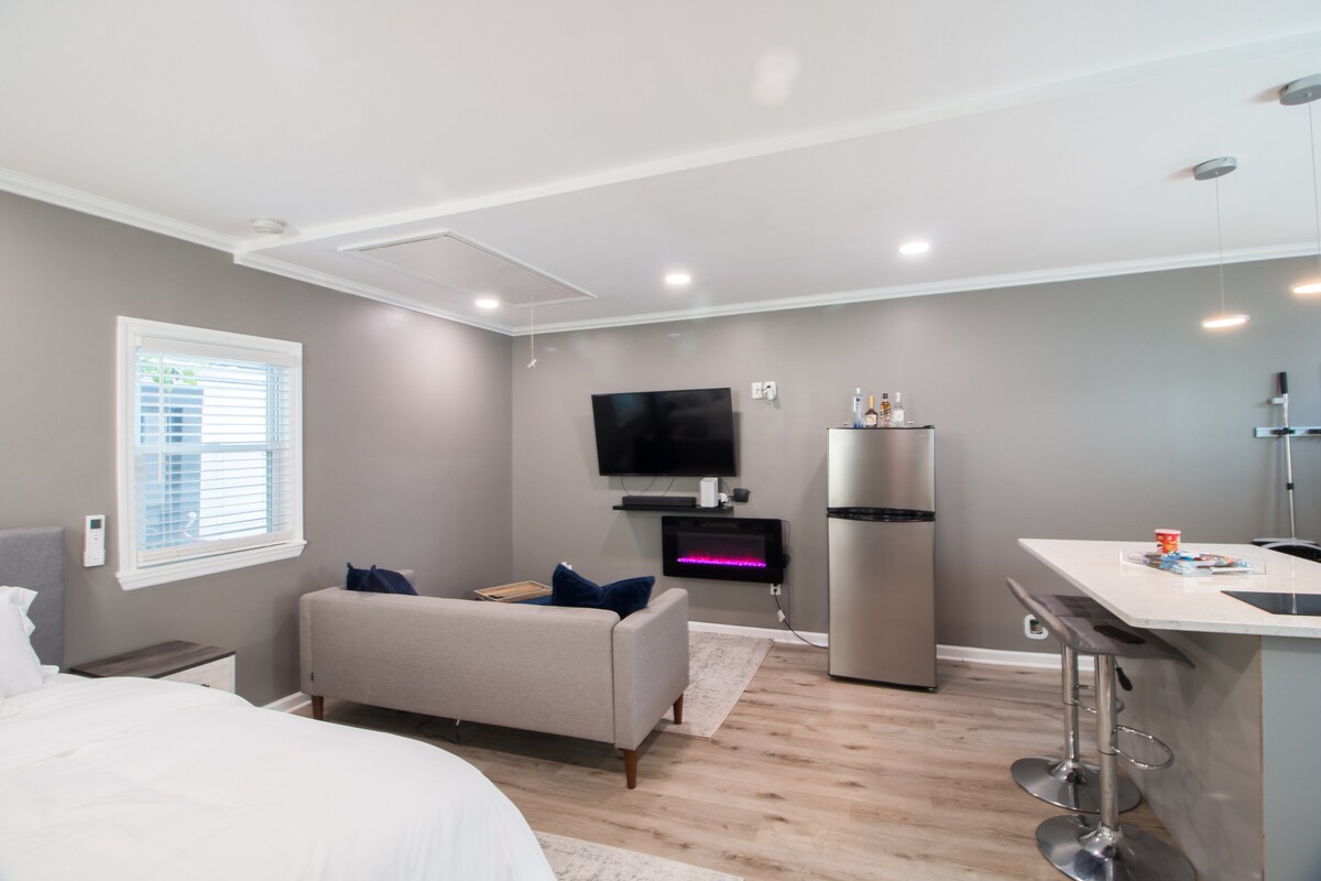 Newly built ground-level studio apartment in a quiet, walkable neighborhood 15 min from MetLife Stadium, American Dream Mall, and an easy transit to NYC. This bright, thoughtfully designed space features a comfy sofa bed, fully stocked modern kitchen, and spa-like bathroom. Ideal for couples seeking a romantic, peaceful retreat with access to NYC attractions, dining, shopping, and unforgettable adventures, plus modern comforts and serene ambiance. Book your romantic getaway today!