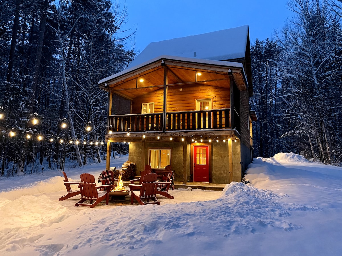 La Bella Loona - A beautiful 1 bd cottage located directly on Schroon lake. Amazing mountain and lake views from every window. 50' of direct water access with small sandy beach, outdoor firepit and grill, and multiple hang out spots. The cottage is newly built and furnished, has an indoor fireplace, central AC, fully stocked kitchen, and screened in room overlooking the lake. There are 2 kayaks available for use. Be assured everything is provided to make your stay as comfortable as possible.