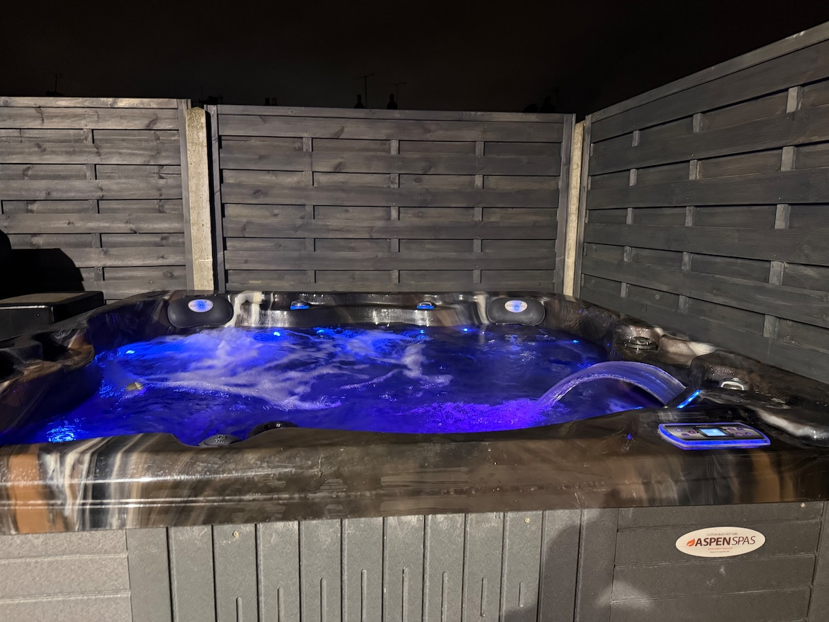 Toppesfield Wine Centre is a contemporary ‘Scandi-style villa’ with a large open plan lounge/dining area which has a giant picture window overlooking Toppesfield Vineyard and full height glass sliding doors looking out onto a beautiful garden/ private patio with a large outside dining table and a luxurious day bed. It has a luxury bedroom with superking bed, view over the vineyard, luxury bathroom, tennis court and 4 person jacuzzi (2nd bedroom available via Airbnb 4 person listing)