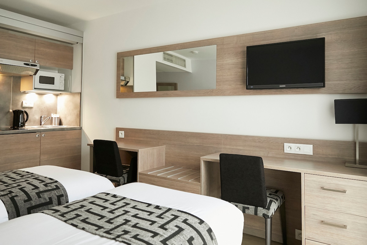 漂亮的单间公寓,2张单人床,酒店式公寓