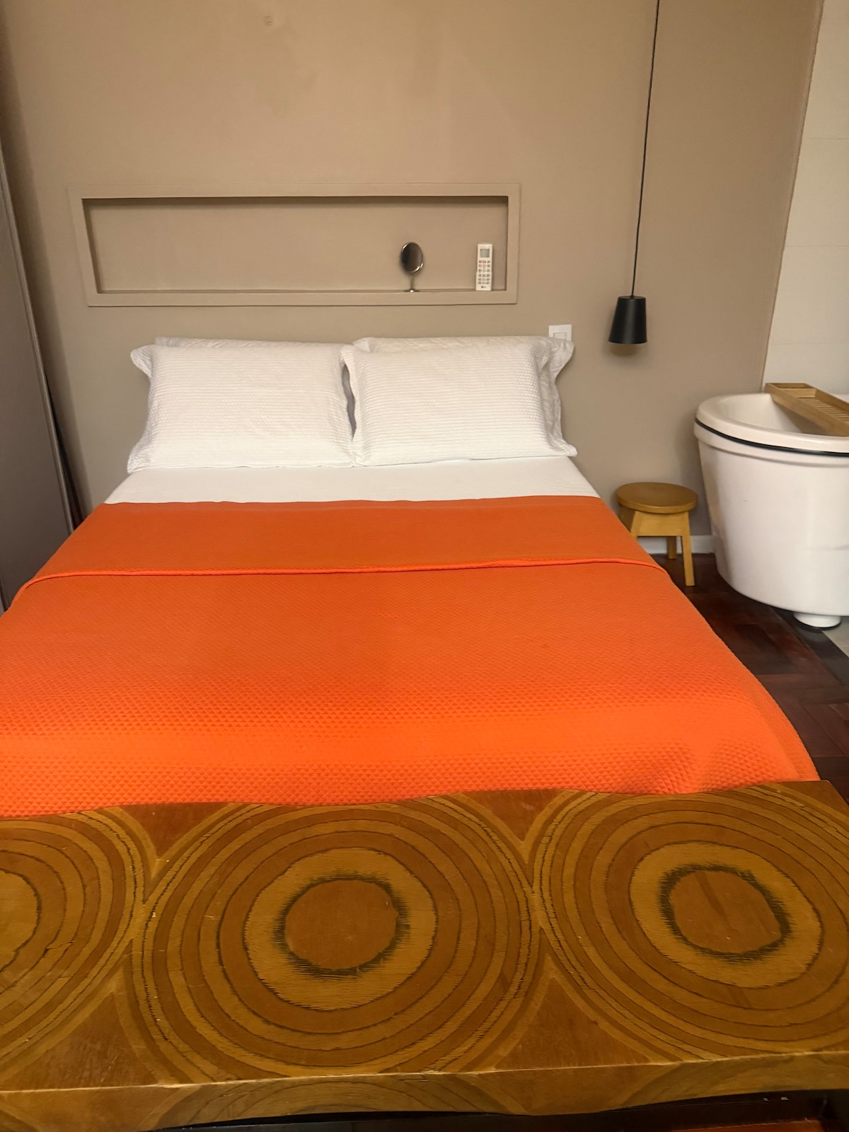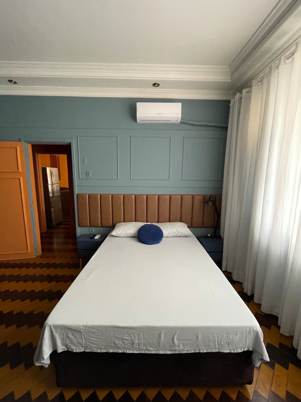 New studio in the historic Palácio do Rádio Building (1949), a landmark of Belém's verticalization. Located on the 9th floor, it offers an incredible view of the river and the sunrise, with no nearby windows—ensuring total privacy. Features a retractable double bed + sofa with 2 single beds, 58” Smart TV, 600 Mb internet, a full kitchen, and a modern bathroom. The location is next to the commercial area with shops and typical food. Cross the street and you are in the historic center. Near COP30