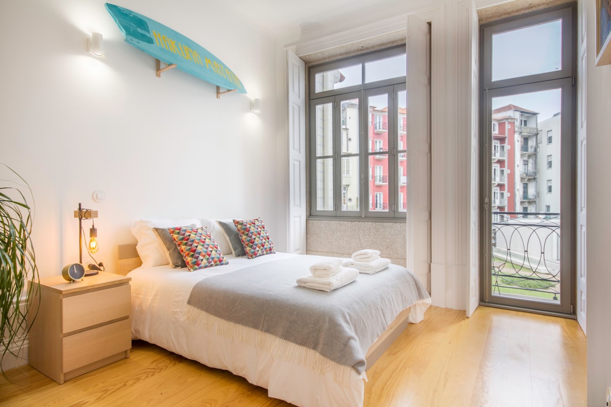 Just steps from the breathtaking azulejo-adorned São Bento train station and iconic Avenida dos Aliados, this cozy apartment offers the perfect urban escape for couples. This welcoming haven blends central convenience with serene privacy. - 5 minute walk to Ribeira - Douro River - Paid parking under our building - Calm and relaxed balcony - Metro, Train, Bus and Taxis in front of our building - All Porto main attractions close by - Luggage lockers available inside São Bento station