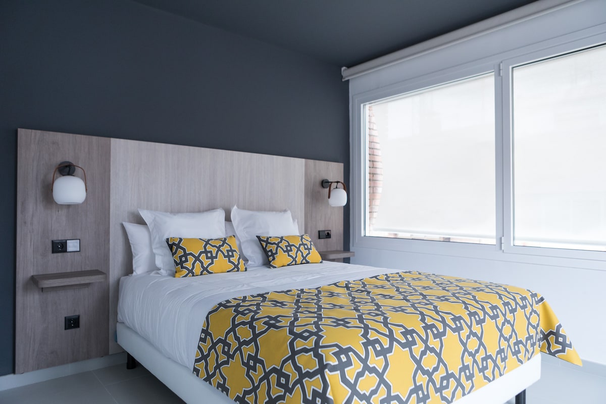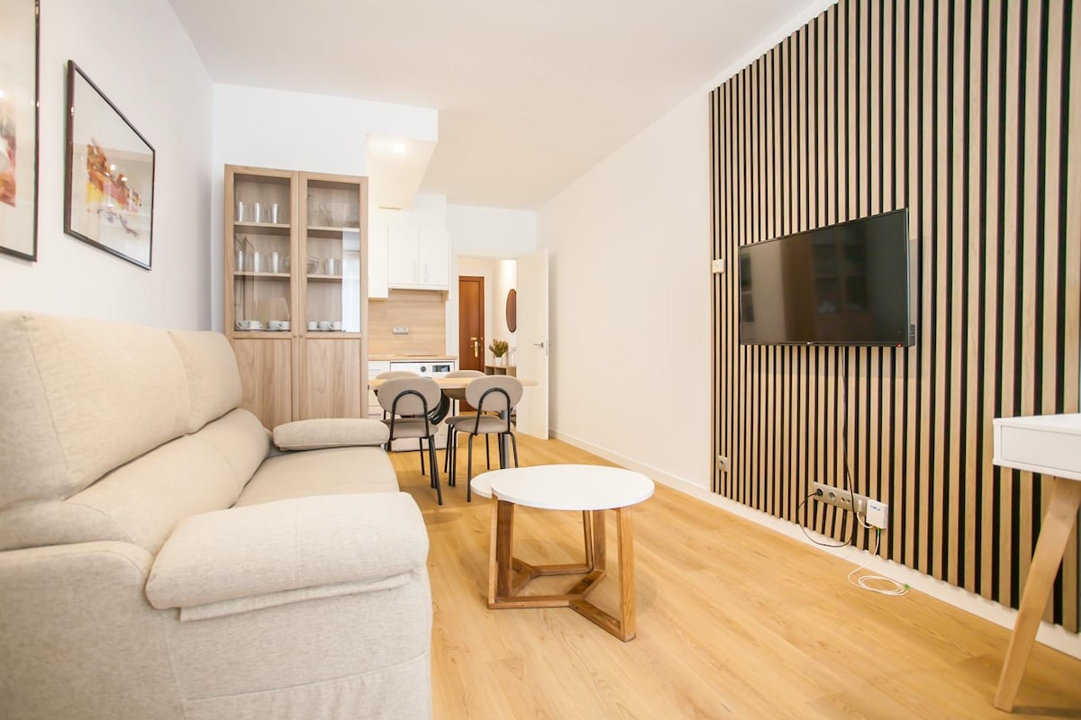 Magnificent 45 square meter apartment in the heart of Madrid. With spectacular design and decoration, spacious areas, and high ceilings, the apartment is equipped with everything you need for your stay in Madrid. The living room has three balconies overlooking the street that provide great brightness to the flat. The bedroom has an en-suite bathroom and a work desk. From the apartment, you can walk to almost all the iconic points of Madrid.