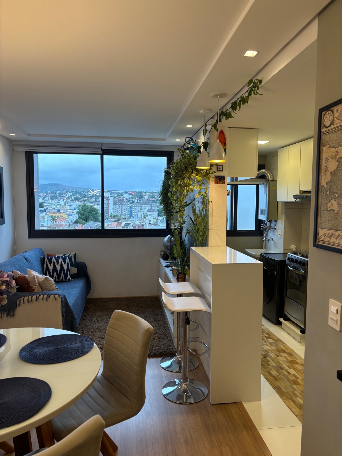 Viva uma experiência única neste estúdio acolhedor e elegante, projetado com atenção aos detalhes para oferecer conforto, funcionalidade e muito estilo. O ap azul planejado é um diferencial exclusivo, com iluminação suave e decoração pensada para relaxar, móvel inteligente e versátil que se transforma em mesa de jantar ou apoio para cozinhar — perfeito para quem valoriza funcionalidade. Piano digital disponível para relaxar, praticar ou se inspirar. Smart TV, Wi-Fi.