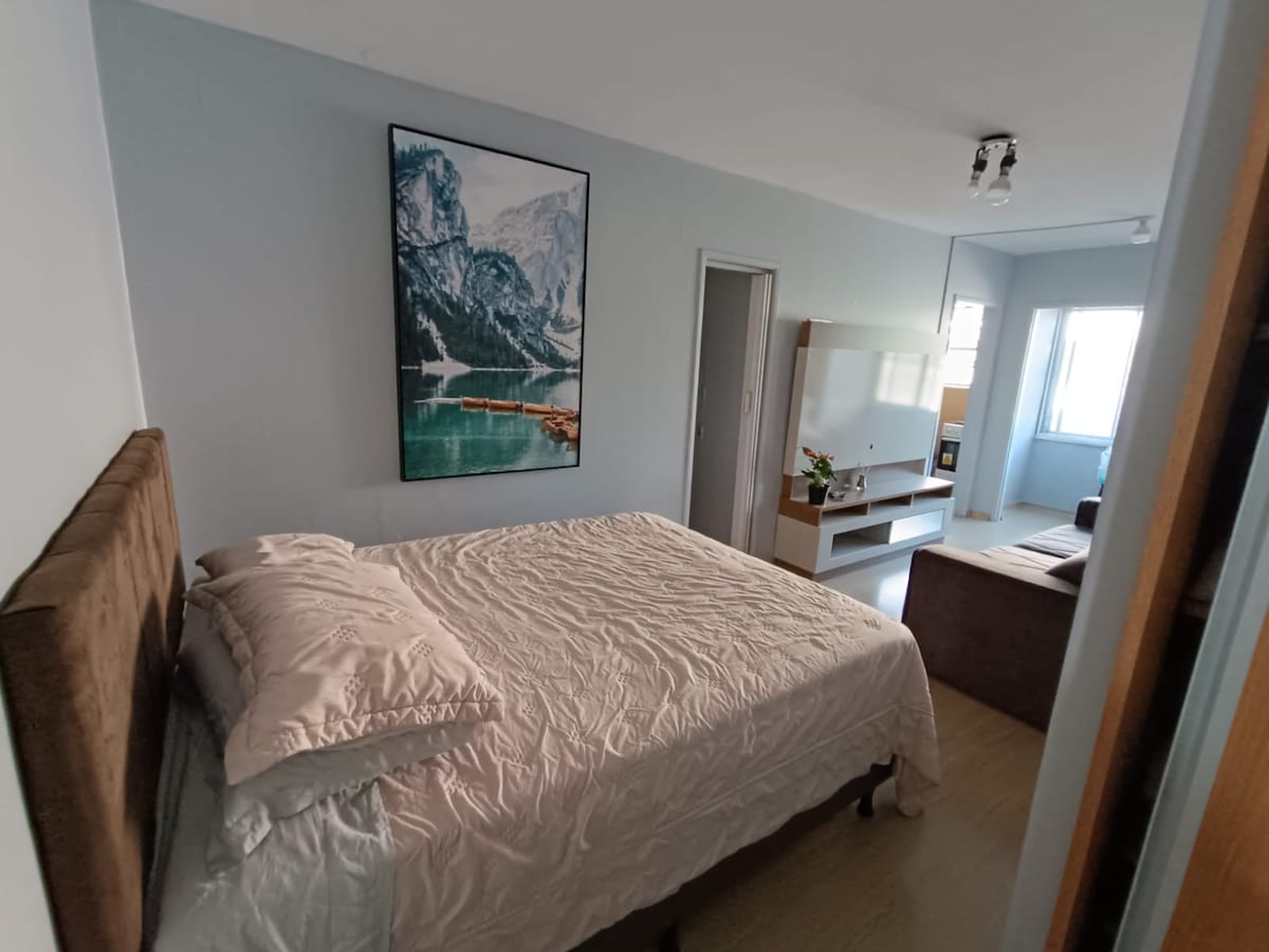 Studio decorado moderno. Possui 01 cama casal de molas e também 01 sofá-cama de casal. Vaga de estacionamento privativa para 01 carro (descoberta e externa) Internet de 240 mega, TV Smart 43” FullHD com NetFlix. Ótimo para seu home office. Equipado para sua estadia, itens como toalhas, roupa de cama, travesseiros, etc. Excelente condomínio com portaria 24 horas. Localizado próximo ao Hospital Mãe de Deus no bairro Menino Deus, orla do Guaíba, skate park e ao estádio do Internaciona