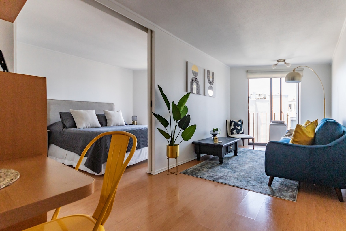Relájate en este espacio tan tranquilo y elegante. Limpio, ,wifi, Smartv, cocina equipada, aire acondicionado, lavandería exterior (fichas no incluidas en arriendo, frente a 2 estaciones metro Mirador y bellavista la Florida, mall plaza vespucio a una cuadra, restaurantes, supermercados, a 1 km de Museo interecativo mirador, puedes hacer todo caminando por que tiene excelente conectividad, pero si dispones de vehiculo cuentas con estacinamiento privado.