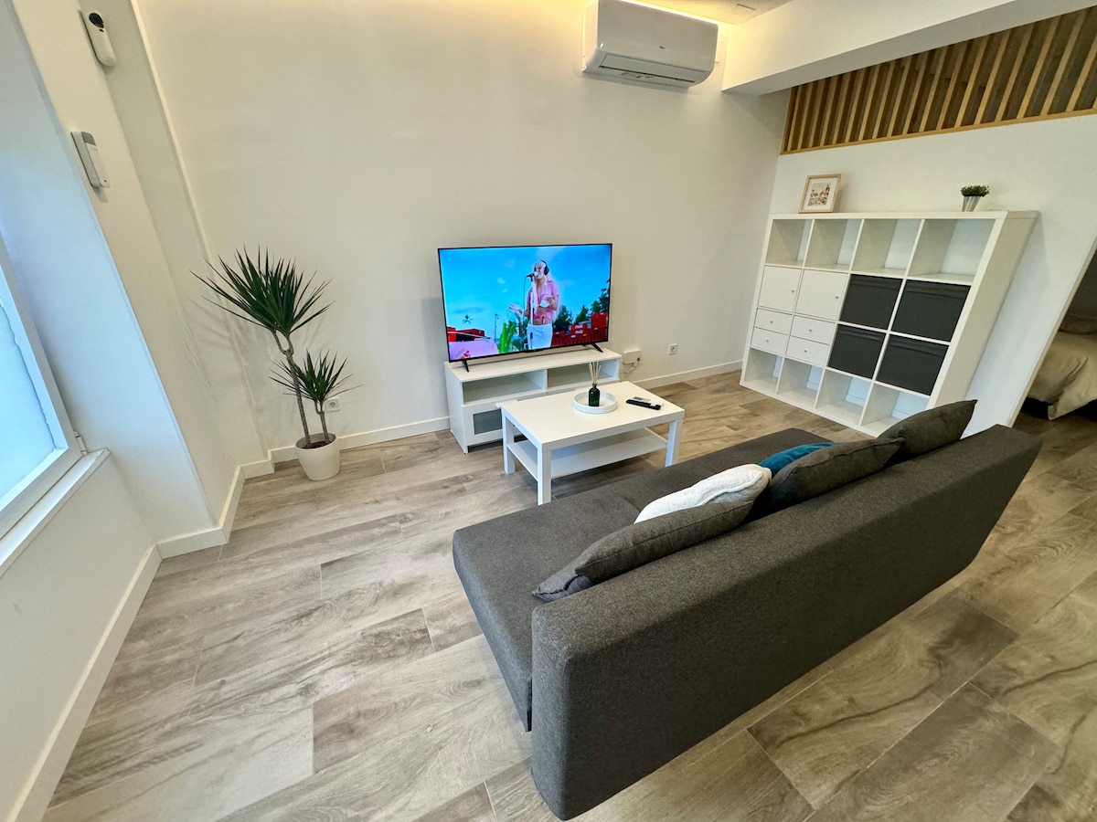 Magnificent 45 square meter apartment in the heart of Madrid. With spectacular design and decoration, spacious areas, and high ceilings, the apartment is equipped with everything you need for your stay in Madrid. The living room has three balconies overlooking the street that provide great brightness to the flat. The bedroom has an en-suite bathroom and a work desk. From the apartment, you can walk to almost all the iconic points of Madrid.