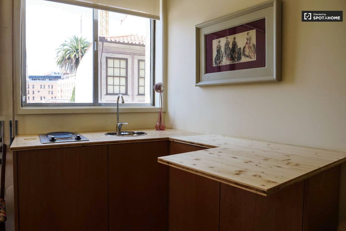Excelente estúdio apartamento, novo, no centro da cidade, com ar condicionado, tranquilo, muito confortável e acolhedor, com decoração moderna, totalmente equipado, com muita luz natural. Com estacionamento gratuito no edifício. Bem localizado, no centro da cidade do Porto, perto de todos os locais de interesse turístico da cidade. Com transportes públicos para o aeroporto, praias e para outras cidades. Não é necessário carro. Você pode visitar toda a cidade a pé.