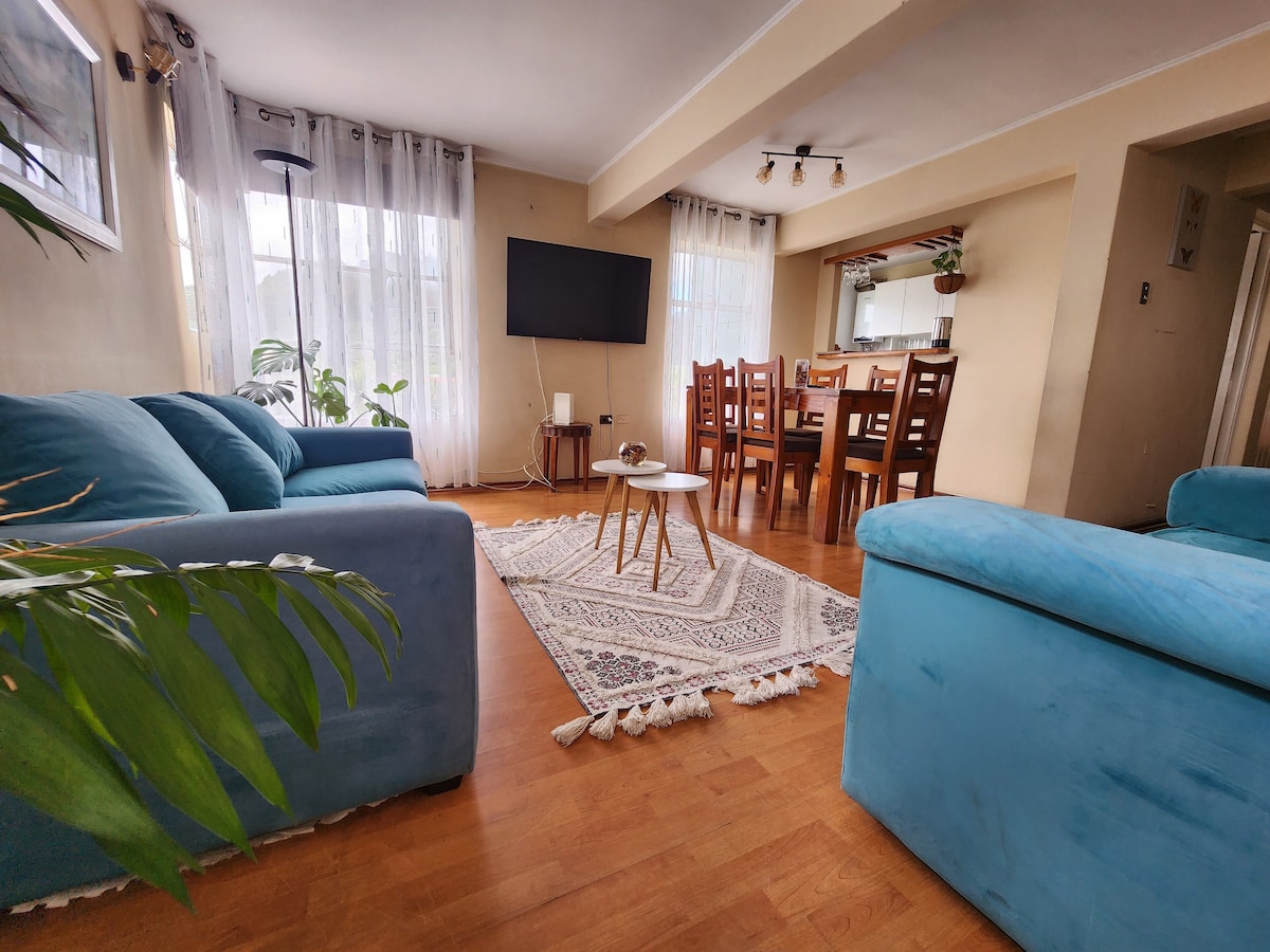 Disfruta de una experiencia con estilo en este alojamiento céntrico, cómodo y full equipado: - Ideal para 2personas - 1 cama queen + 1 futón - Wifi, SmartTV+3000canales(fútbol incluido)Netflix - Cocina full equipada. El edificio ofrece gimnasio y sala de cowork. A 3min del terminal, estadio, universidades, lavandería, farmacias y supermercados. Con locomoción a la puerta, conectividad ideal. Cuenta con conserjería 24/7. Perfecto para descansar, trabajar o explorar la ciudad.