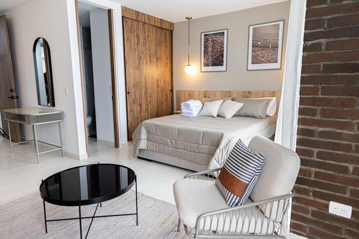 Welcome to a haven of luxury and comfort in the heart of Pereira! This stunning loft offers an unrivalled stay with its modern design and all the amenities you need, including air conditioning ❄️, WiFi 🌐, TV 📺 and hot water 🔥. Strategically located in front of the lively 30 de Agosto Avenue, you'll be just minutes away from the city's main attractions, including the airport and the Unicentro shopping centre 🛍️.