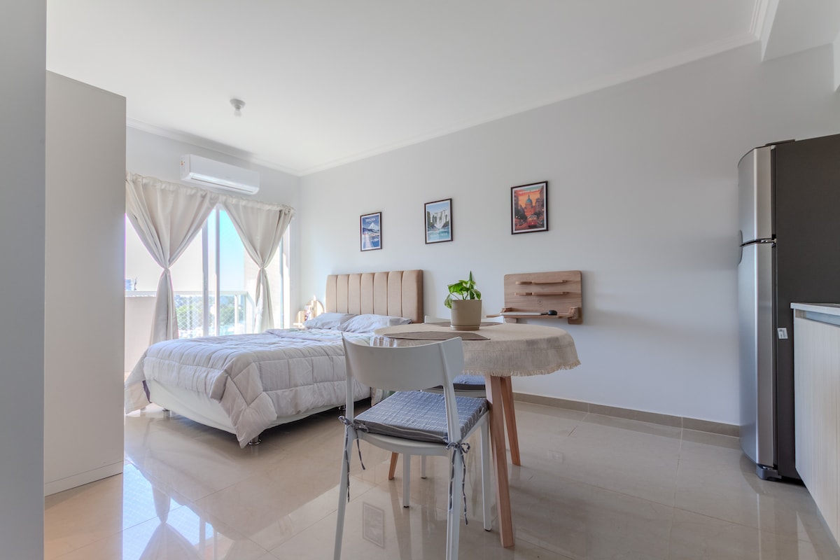 位于好莱坞帕尔莫最佳区域的设计公寓。步行几分钟即可抵达最好的咖啡馆和餐厅。 明亮的单元,可俯瞰大楼的游泳池。设备齐全的酒店客房,非常适合休息、工作和享受帕尔莫好莱坞的魔力。配有双人床、43 英寸电视、毛巾、床单、烤箱和电炉以及您需要的一切,让您感觉宾至如归。入住时间为下午 3 点以后,退房时间为上午 11 点以前。