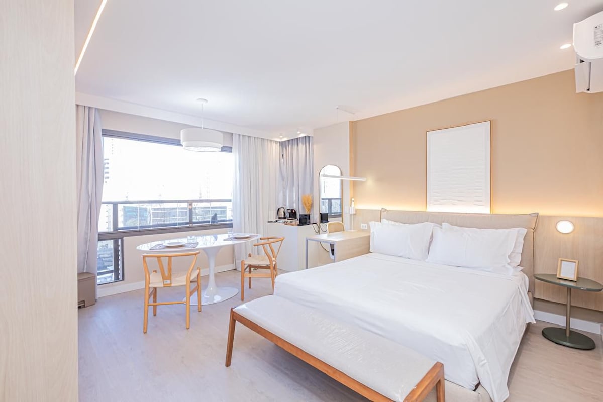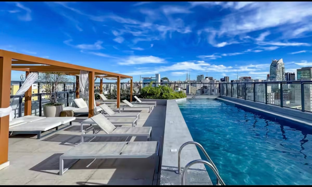 Studio de luxo cuidadosamente projetado para oferecer conforto, estilo e praticidade no coração de São Paulo. O espaço conta com uma linda piscina no rooftop com vista livre para São Paulo - design moderno, iluminação aconchegante, cama confortável, cozinha equipada, ar-condicionado, Wi-Fi rápido e Smart TV. Localizado a poucos passos da Avenida Paulista, metrô, restaurantes, cafés e shoppings, é ideal para quem busca uma estadia urbana sofisticada, segura e extremamente bem localizada.