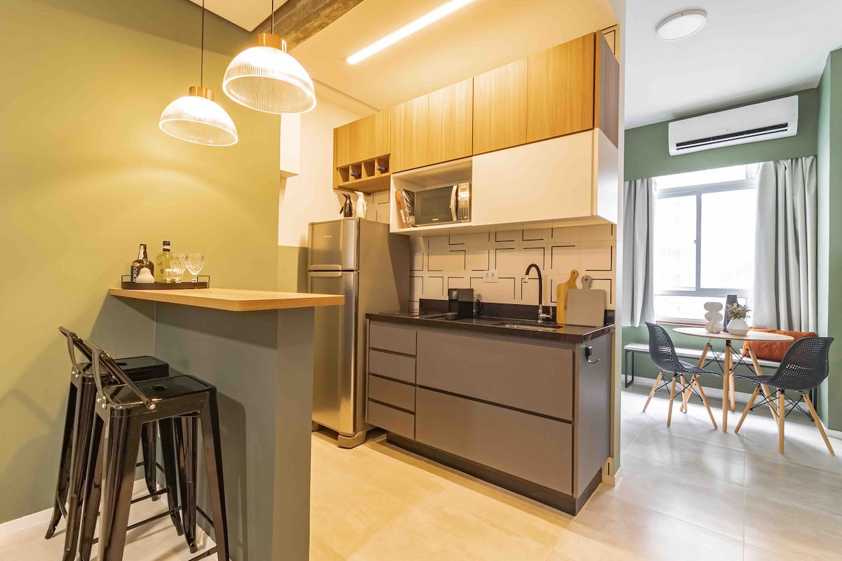 Our newly renovated apartment in the heart of trendy Jardins is sure to impress with its sleek modern design, comfortable amenities, and prime location. Located in a charming mid-century building, you’ll be just steps away from the best dining, shopping, and entertainment in São Paulo. Whether you’re looking to relax or be productive, this apartment has everything you need for a truly enjoyable stay, including a very comfortable workspace, and very quiet bedrooms.