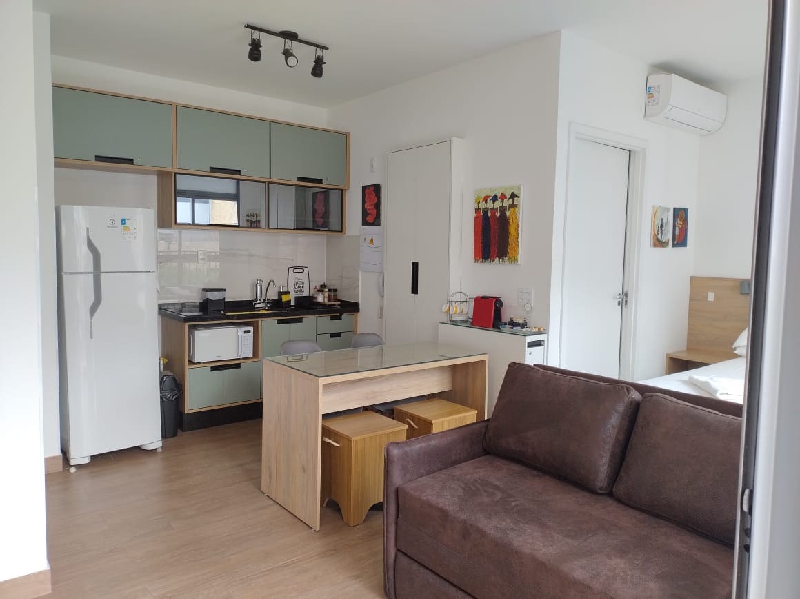 A unique space. Have a true Paulistana experience! Flat with 44m2, 1 bedroom with double bed (noise-resistant window), living room with 65p TV, Wifi, kitchen, new and renovated apartment, balcony, free parking, close to several shopping centers, convenience stores, fantastic restaurantes, in the coolest and most famous neighborhood of São Paulo, close to Subway (400 meters) , beautiful view of Av Paulista. Accommodates up to 3 people (1p in the living room sofa-bed). 24h reception desk.