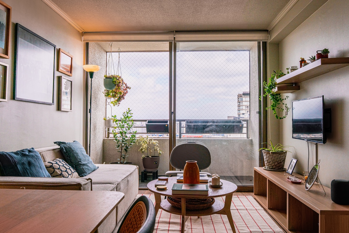 Disfruta de la sencillez de este alojamiento tranquilo y céntrico.Disfruta una estadía moderna en un edificio nuevo en el corazón de Ñuñoa, al lado del Parque Bustamante y a pasos del Metro Irarrázabal . Cuenta con: 1 Dormitorio con cama doble y sofá cama. 2 Cocina full equipada con cafetera Nespresso 3 Baño con tina y amenities. 4 Smart TV con Netflix. 5 WiFi flash de 600 Mbps. 6 Refrigerador moderno. 7 Ropa de cama premium. Fumar solo en terraza (Ley 20.660).