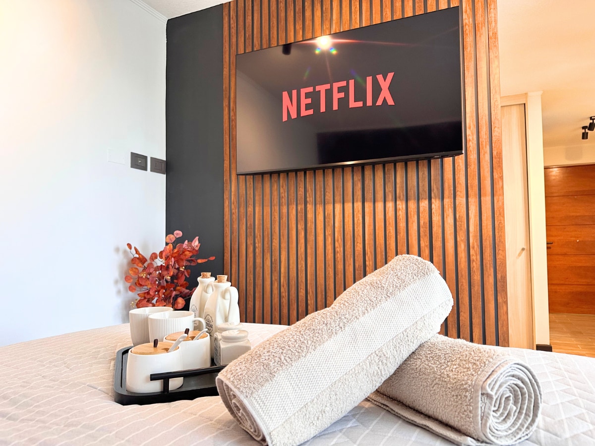 现代单间公寓 | 数字化办理入住。5 寸电视,国内频道