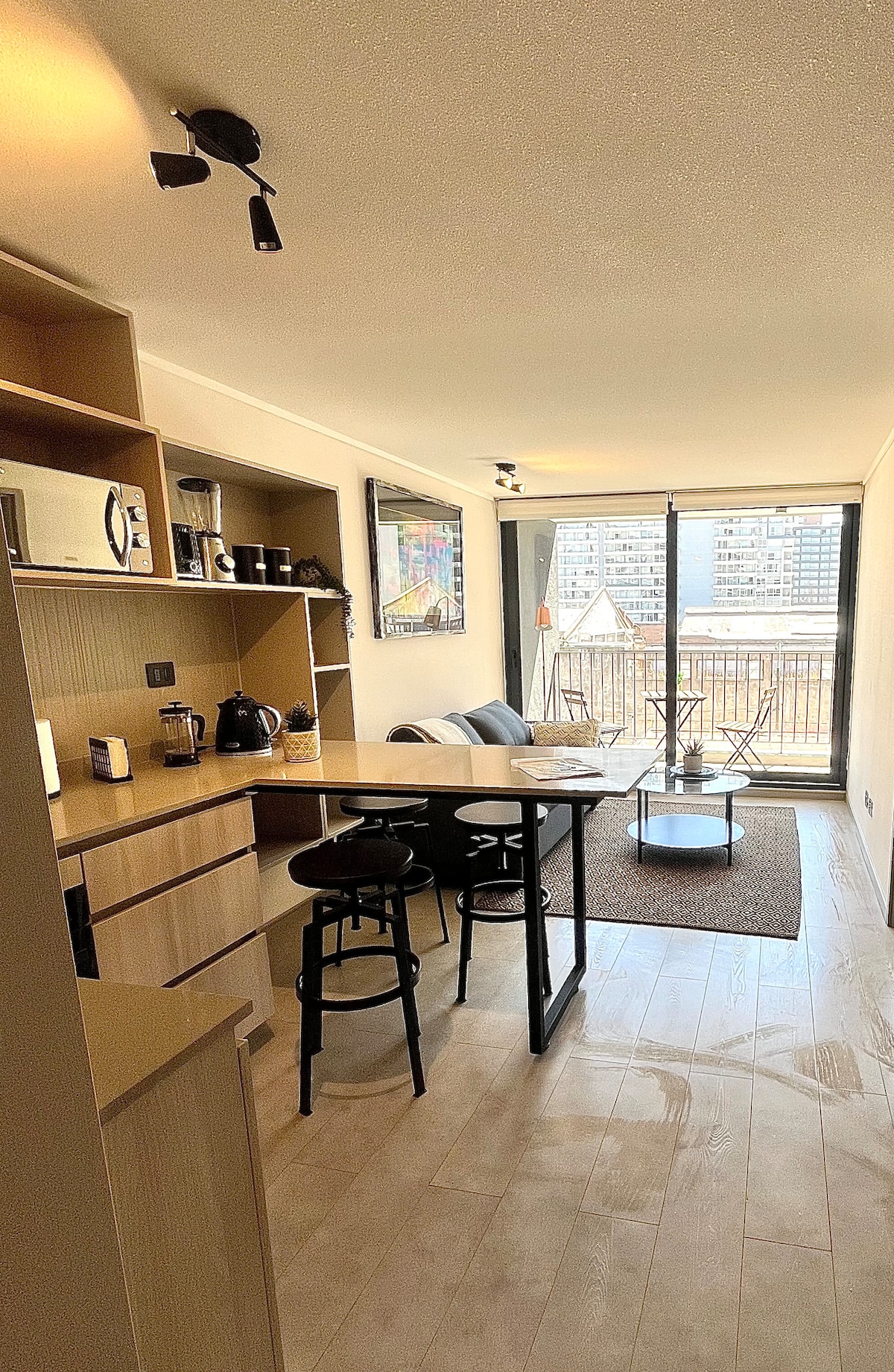 ¡Disfruta de una estancia inolvidable en nuestro hermoso departamento! Totalmente equipado, con Wi-Fi (perfecto para teletrabajo), cocina full equipada, habitación acogedora y estacionamiento privado dentro de las instalaciones. 📍 Ubicación: A 8 minutos caminando del metro Ñuble (línea 5 y línea 6). 🛏️ Capacidad: Hasta 2 personas ✨ Servicios: Wi-Fi, televisión, Netflix, ropa de cama, toallas, utensilios de cocina y más. ¡Tu hogar lejos de casa te espera!