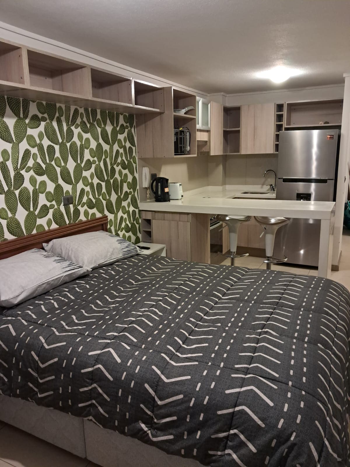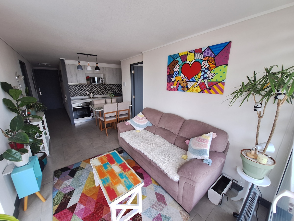 ¡Disfruta de una estancia inolvidable en nuestro hermoso departamento! Totalmente equipado, con Wi-Fi (perfecto para teletrabajo), cocina full equipada, habitación acogedora y estacionamiento privado dentro de las instalaciones. 📍 Ubicación: A 8 minutos caminando del metro Ñuble (línea 5 y línea 6). 🛏️ Capacidad: Hasta 2 personas ✨ Servicios: Wi-Fi, televisión, Netflix, ropa de cama, toallas, utensilios de cocina y más. ¡Tu hogar lejos de casa te espera!